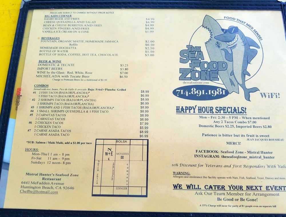 The Seafood Zone - Mistral Hunter Restaurant - Huntington Beach